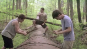 影片主要讲述三个十三四的小男孩离家出走,跑去森林里建木屋并在其...